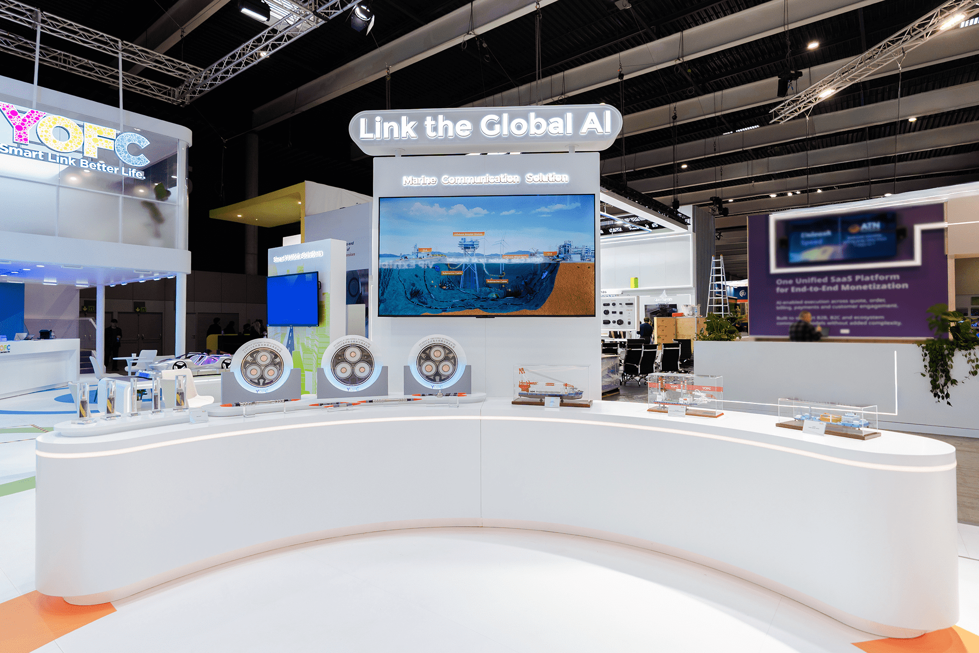 To support the cross-regional collaboration required by large-scale AI models, YOFC presented its global optical network connectivitycapabilities for AI networks. The solution combines submarine optical and power cables, multi-core fibre, and G.654.E fibre to support long-distance, high-capacity backbone transmission.